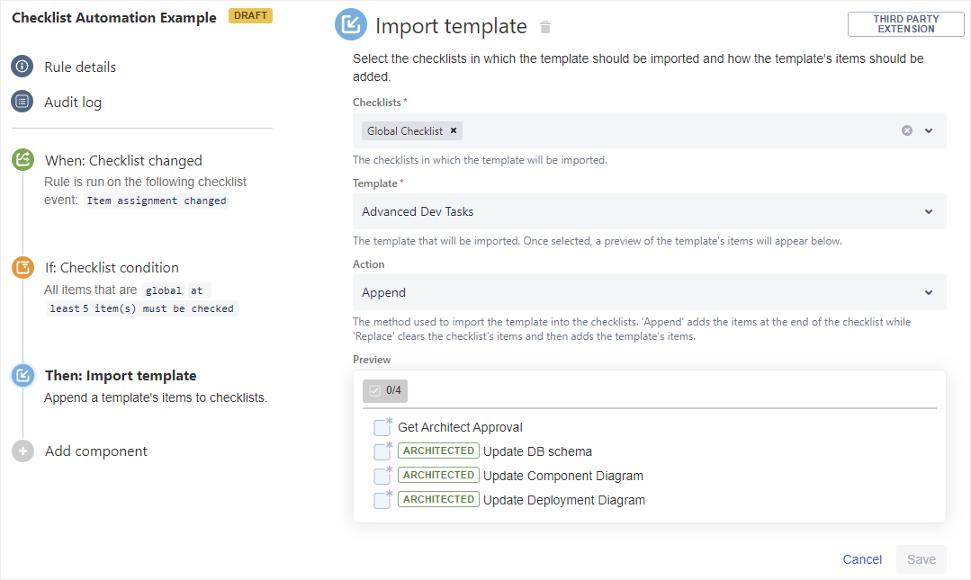 The Checklist changed trigger, Checklist condition and Import template action were added to Automation for Jira to help you tailor your checklist-related processes.