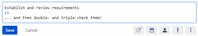 On the new line below the >> characters that were automatically added to the text field, enter a description and click Save.