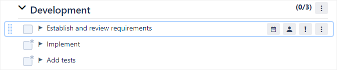 Click on an item or header in the checklist to open the inline editor.