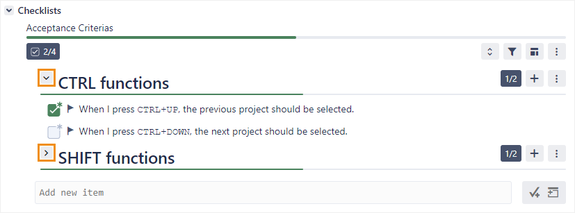 Each header will display a running summary of how many checklist items have been checked in that section.
