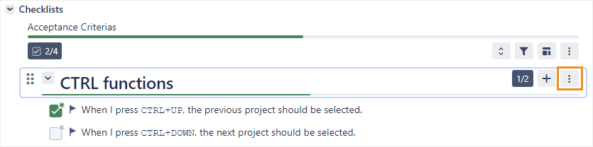 Hover over an item in the checklist and click the menu button.