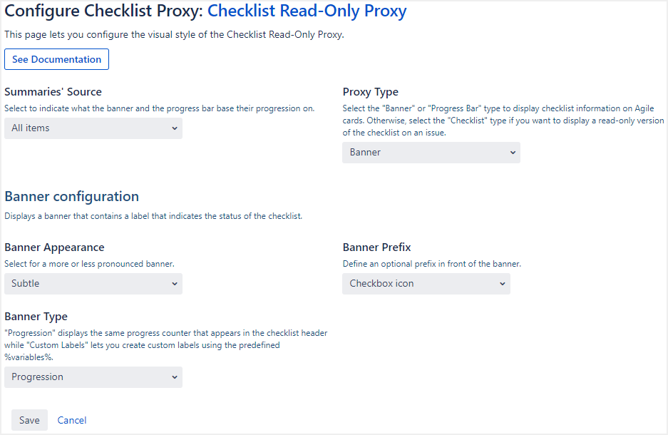 These parameters control the look and feel of the Checklist Read-Only Proxy.