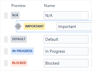 Statuses can be reordered, which changes the order in which they appear in the status drop-down.