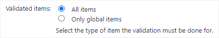 For Validated items, select All items. This will prompt the validator to check all the checklist items, not just the global items.
