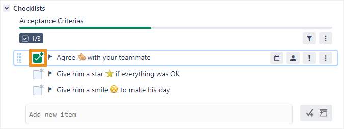 Click on the checkbox next to an item in the checklist.