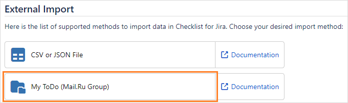 In the sidebar, go to Checklist for Jira > External Import.