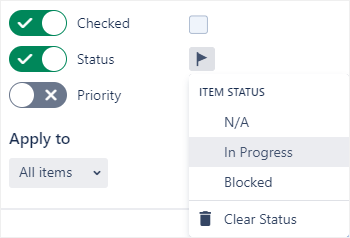 In the Apply to drop-down, select whether to apply your selections to all items, checked items only, or unchecked items only.