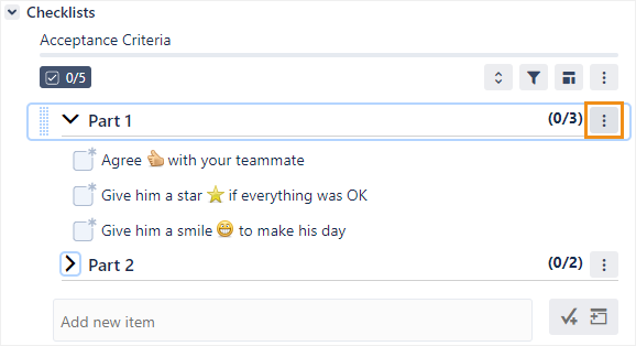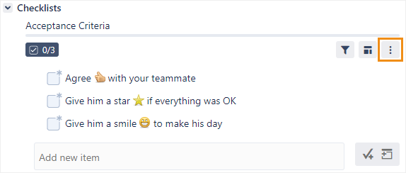 In the checklist header, click the menu button.