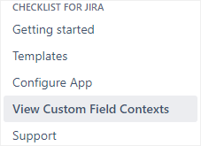 In the sidebar, go to Checklist for Jira > View Custom Field Contexts.