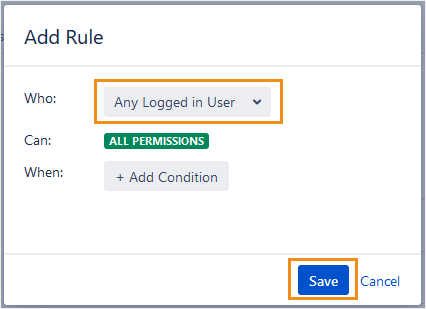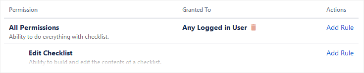 Defining an Any logged in User rule at the All Permissions level lets any user do anything, unless restricted by a rule. Whereas when no rule is defined for All Permissions, no users can do anything, unless allowed by a rule.
