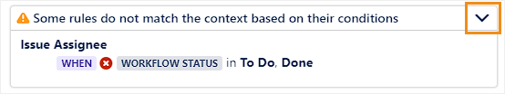When a condition filters out certain rules, those rules are shown in an expandable section.