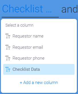 In the checklist data column field, select the desired Checklist Data column (the name may differ).