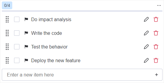 In the checklist items field, enter the checklist items you want to add. If there's more than one, enter each checklist item on its own line.