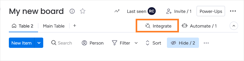 On your desired board, select Integrate at top right. The integrations window opens.