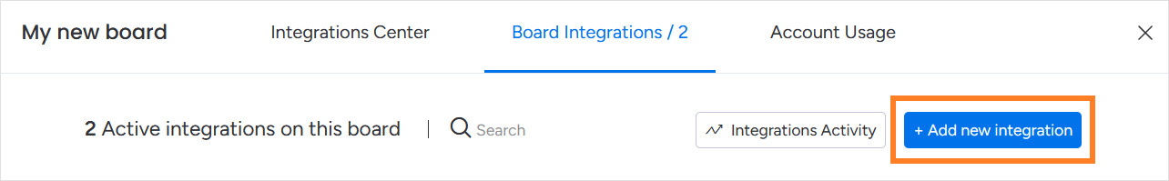 Go to the Board Integrations tab, then select + Add new integration at top right.