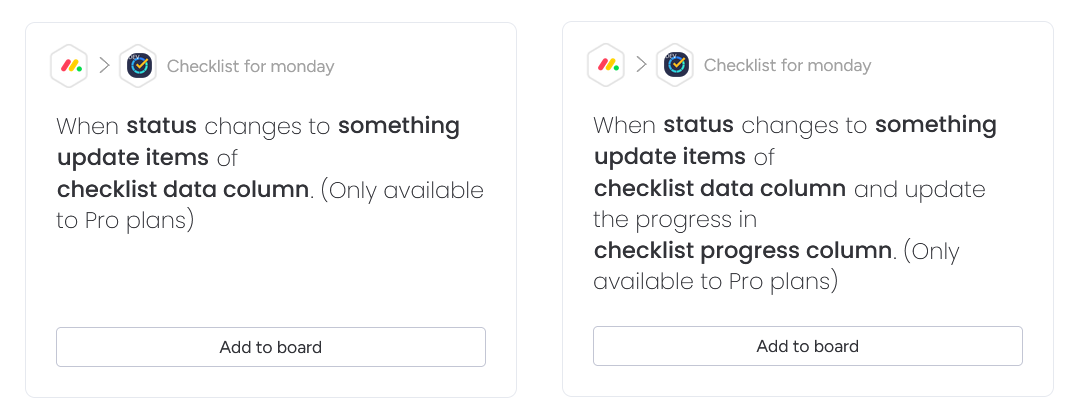 Automations / Integrations are only available on the Pro plan of Checklist for monday.