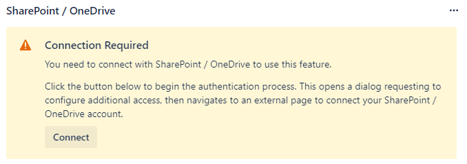 A SharePoint / OneDrive panel will appear under the issue’s Description field. Click Connect to begin the authentication process.