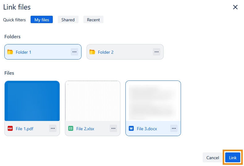 To link files or folders to a Jira issue: